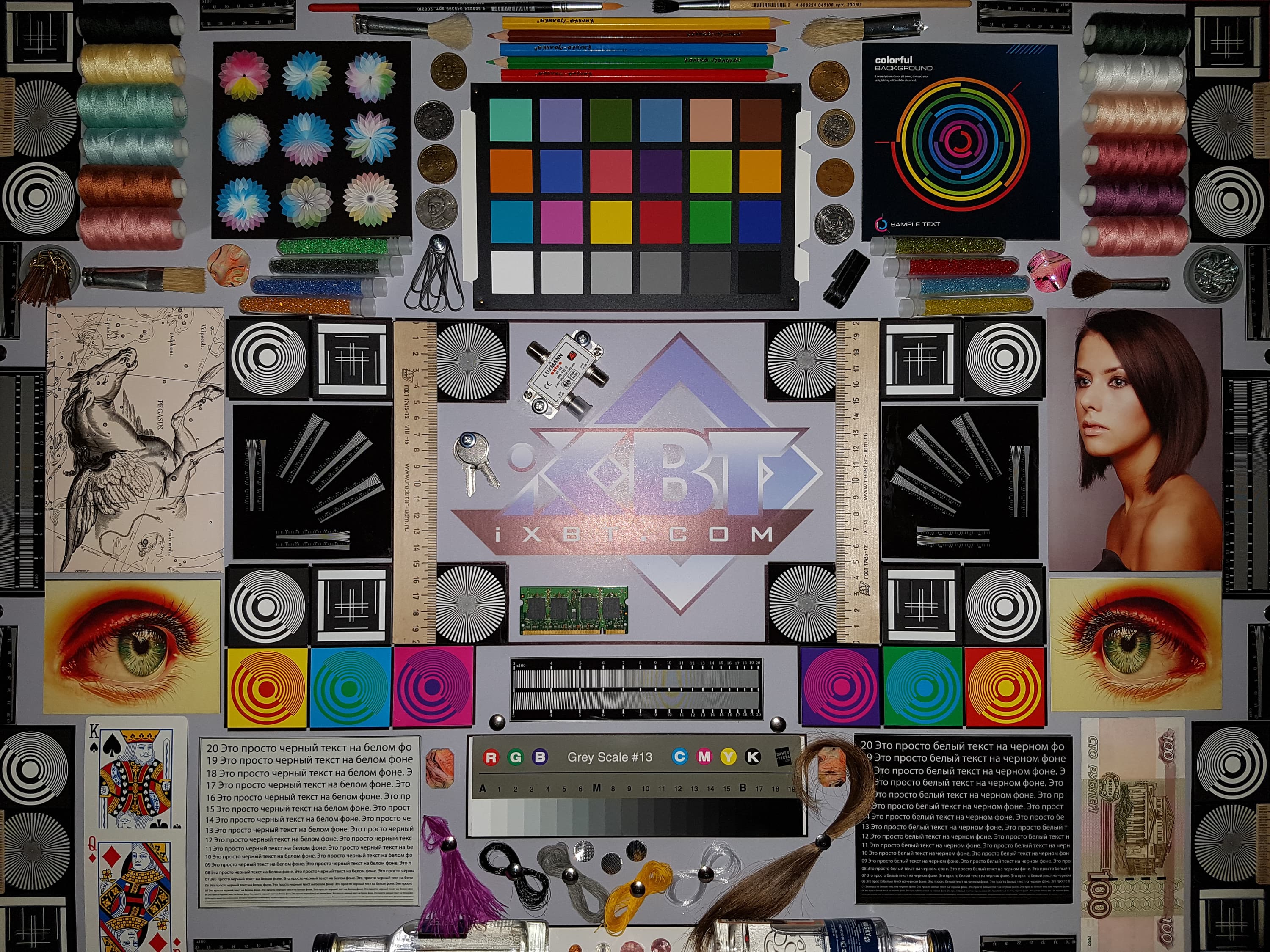 Яркость под углом у обоих экранов заметно уменьшилась (чтобы избежать сильного затемнения, выдержка увеличена в сравнении с предыдущими фотографиями), но в случае Samsung падение яркости выражено гораздо меньше. В итоге при формально одинаковой яркости экран Samsung Galaxy S7 Edge визуально выглядит гораздо более ярким (в сравнении с ЖК-экранами), так как на экран мобильного устройства часто приходится смотреть как минимум под небольшим углом. И тестовая картинка: