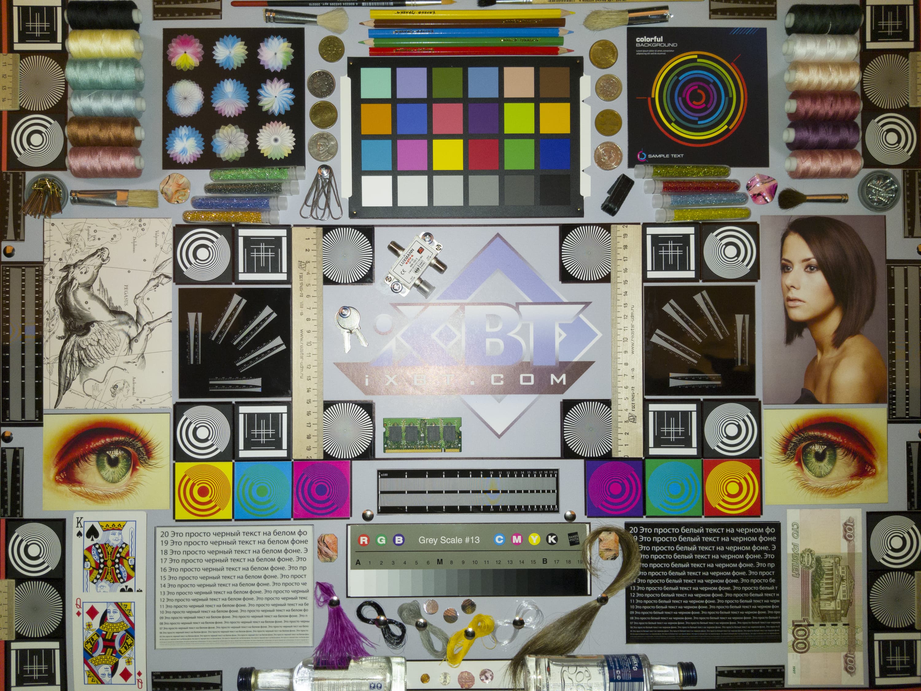 Отметим хорошую равномерность яркости и цветового тона белого поля (за исключением небольшого затемнения и изменения оттенка к загнутым краям).