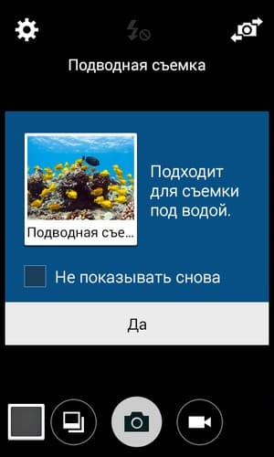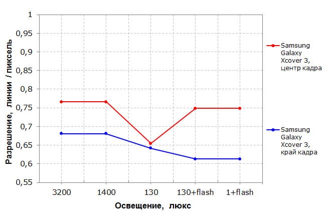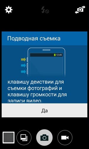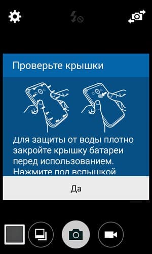 Основная камера оснащена 5-мегапиксельным модулем с объективом с диафрагмой f/2,2, одинарной LED-вспышкой и автофокусом, по субъективным ощущениям достаточно быстрым. Есть возможность ручных настроек значения ISO, баланса белого, но нет режима HDR. Среди дополнительных режимов съемки, таких как панорамный или спортивный, имеется также режим подводной съемки. По сути, это такой специальный режим, при котором фотосъемка жестко привязана к аппаратной клавише Xcover, а съемка видео — к клавише регулировки громкости, ведь под водой экран становится нечувствительным к прикосновениям. Впрочем, задействовать такой вариант управления можно и при стандартном режиме, просто переназначив функции боковых аппаратных кнопок.
