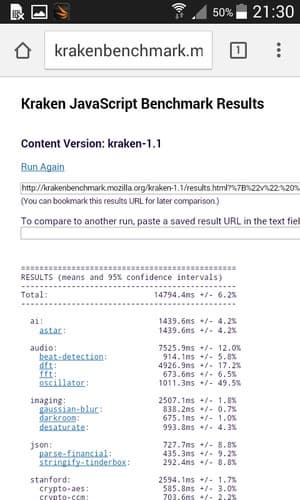 | Mozilla Kraken (мс, меньше — лучше) | 14794 | 13220 | 14391 | 15919 | 13619 |