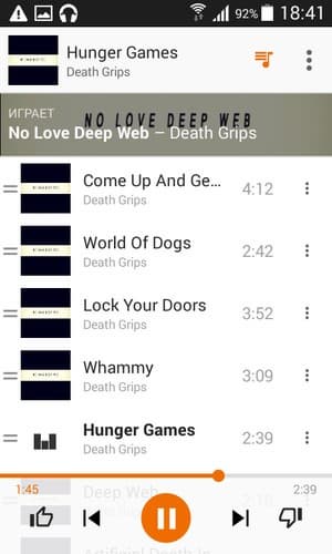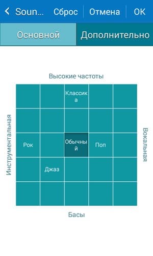 Для воспроизведения музыки здесь нет собственного музыкального плеера, используется штатный проигрыватель Google Play Music, хотя возможности ручных настроек звука расширены. Здесь присутствует и эквалайзер с предустановленными значениями, и знакомая матрица из квадратиков, к тому же можно отдельно поднять как низкие, так и высокие частоты. Виртуальный объемный звук включается только при подключении наушников.