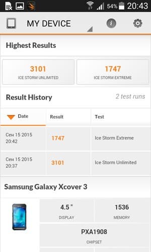 В любом случае смартфон Samsung Galaxy Xcover 3 находится на текущий момент по производительности на уровне ниже среднего, он больше призван быть надежным органайзером с длительным временем автономной работы, нежели производительным мультимедийным комбайном, хотя и за играми скоротать время с ним иногда можно.