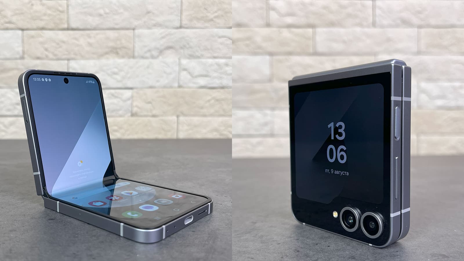 В разложенном состоянии смартфон с виду напоминает обычный моноблок, но на практике разница ощутима: у него более вытянутый и узкий экран. В строчку по ширине влезает меньше текста, картинки отображаются более мелко. Из-за этих узких экранов не всем нравится использовать раскладные смартфоны — что горизонтальные, что вертикальные в закрытом состоянии (у тех внешний экран тоже более узкий, чем у обычных моноблоков).