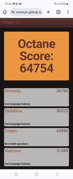 | Google Octane 2 (больше — лучше) | 64754 | 19467 | 24106 | 52617 | 7230 |