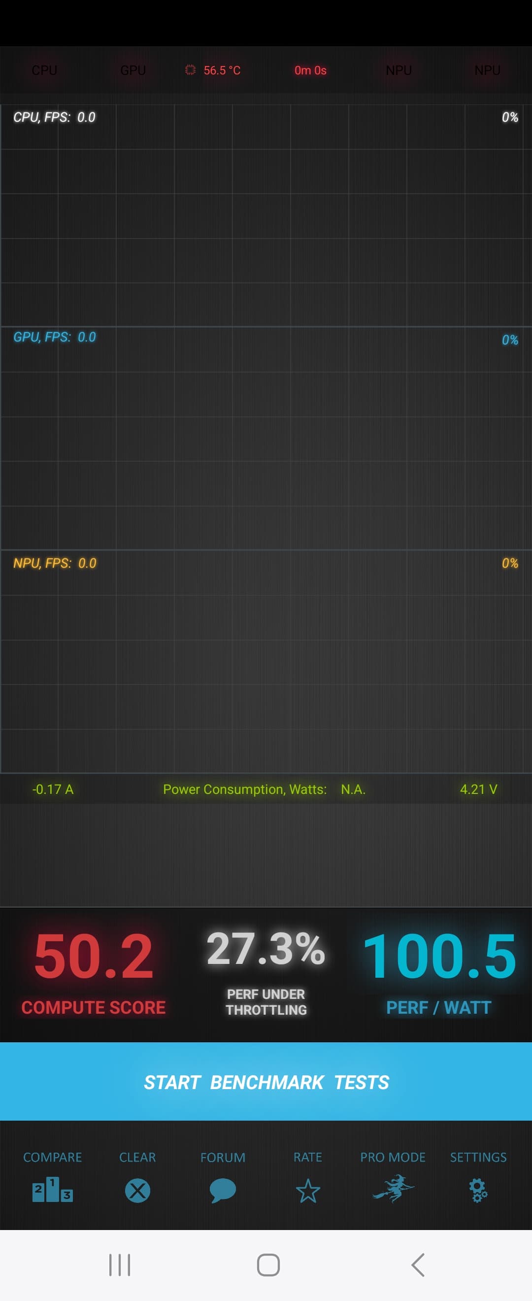 Тест на снижение производительности при нагреве мы проводим с помощью программы Burnout Benchmark, которая позволяет нагружать CPU, GPU и NPU: