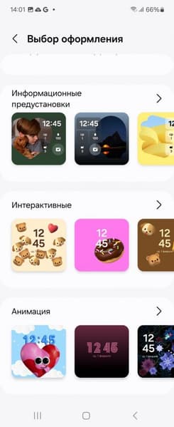 Что касается внешнего экрана, он поддерживает вывод лишь некоторого ограниченного набора виджетов, хотя и настраиваемых. Произвольное приложение на нем не запустишь. Правда, есть «лайфхак»: через приложение Fine Lock можно добавить плагин Good Lock, который как раз позволяет выводить на внешний экран любые приложения. Стандартный же набор включает анимированные заставки, информацию о погоде, уведомления, календарь и т. п.