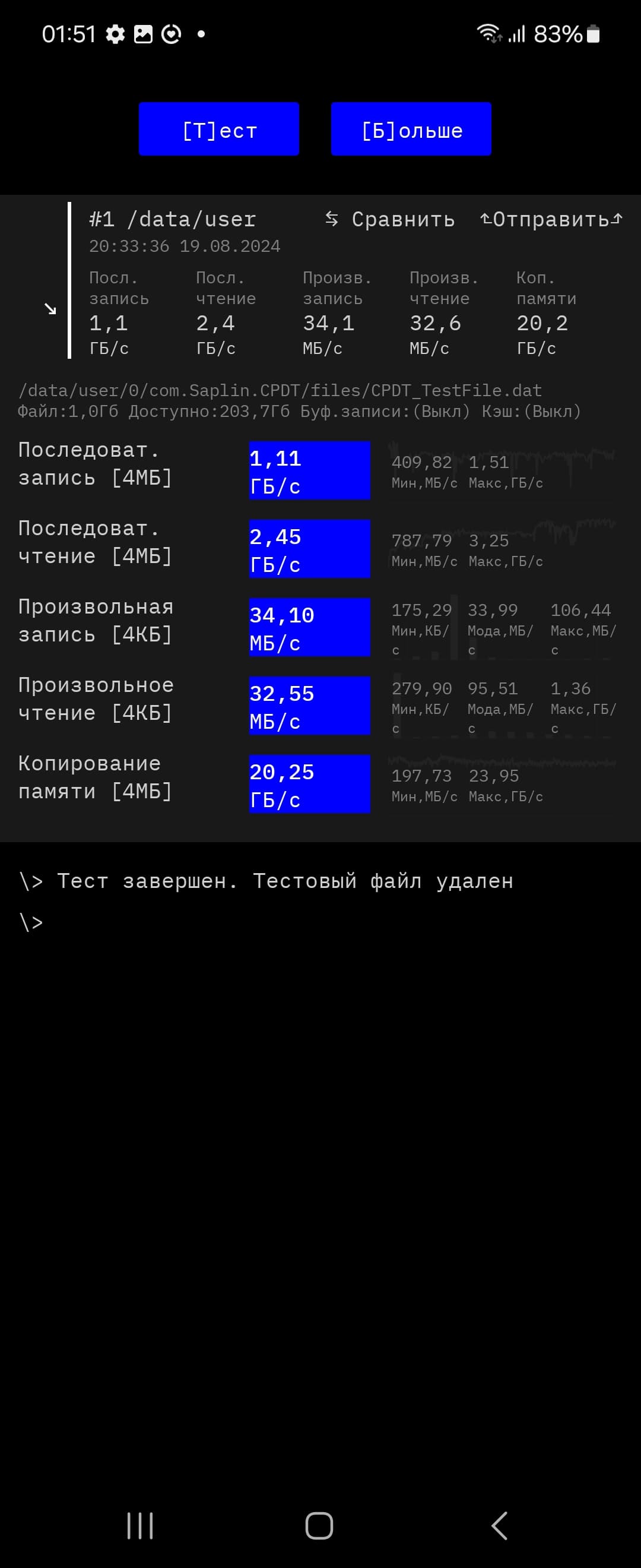 Результаты тестов на скорость работы с памятью: