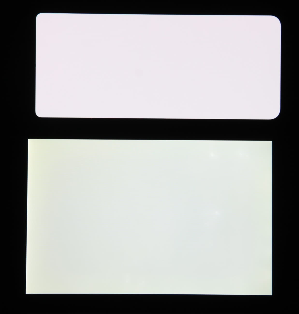 Экраны этого смартфона характеризуются великолепными углами обзора. Яркость под углом у экранов заметно уменьшается (если сравнивать с Nexus 7), но в случае смартфона падение яркости выражено гораздо меньше. В итоге, даже если установить формально одинаковую яркость, то экраны этого смартфона визуально выглядят гораздо более ярким (в сравнении с ЖК-экранами), так как на экран мобильного устройства часто приходится смотреть как минимум под небольшим углом. Правда, у смартфона белый цвет при отклонении на очень большие углы приобретает слабый сине-зеленый оттенок, но черный цвет остается просто черным под любыми углами. Он настолько черный, что параметр контрастности в данном случае неприменим. Для сравнения приведем фотографии, на которых на экраны смартфона и второго участника сравнения (на фотографиях с основным экраном Nexus 7 расположен ниже) выведены одинаковые изображения, при этом яркость экранов изначально установлена примерно на 200 кд/м², а цветовой баланс на фотоаппарате принудительно переключен на 6500 К.