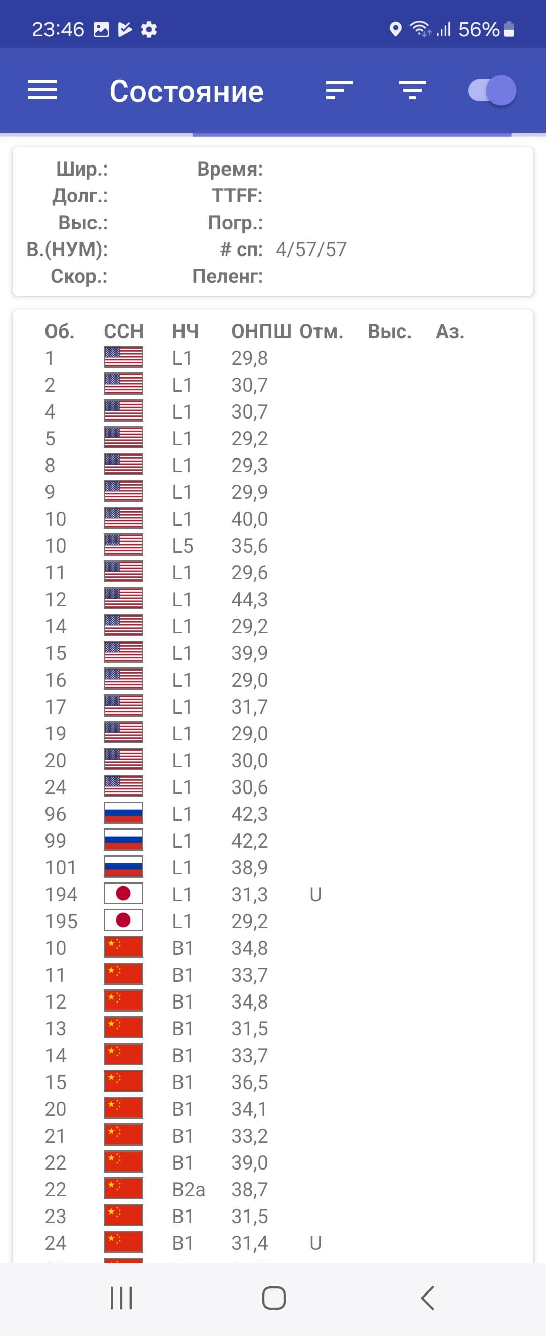 - GPS, Galileo, Глонасс, QZSS, BDS