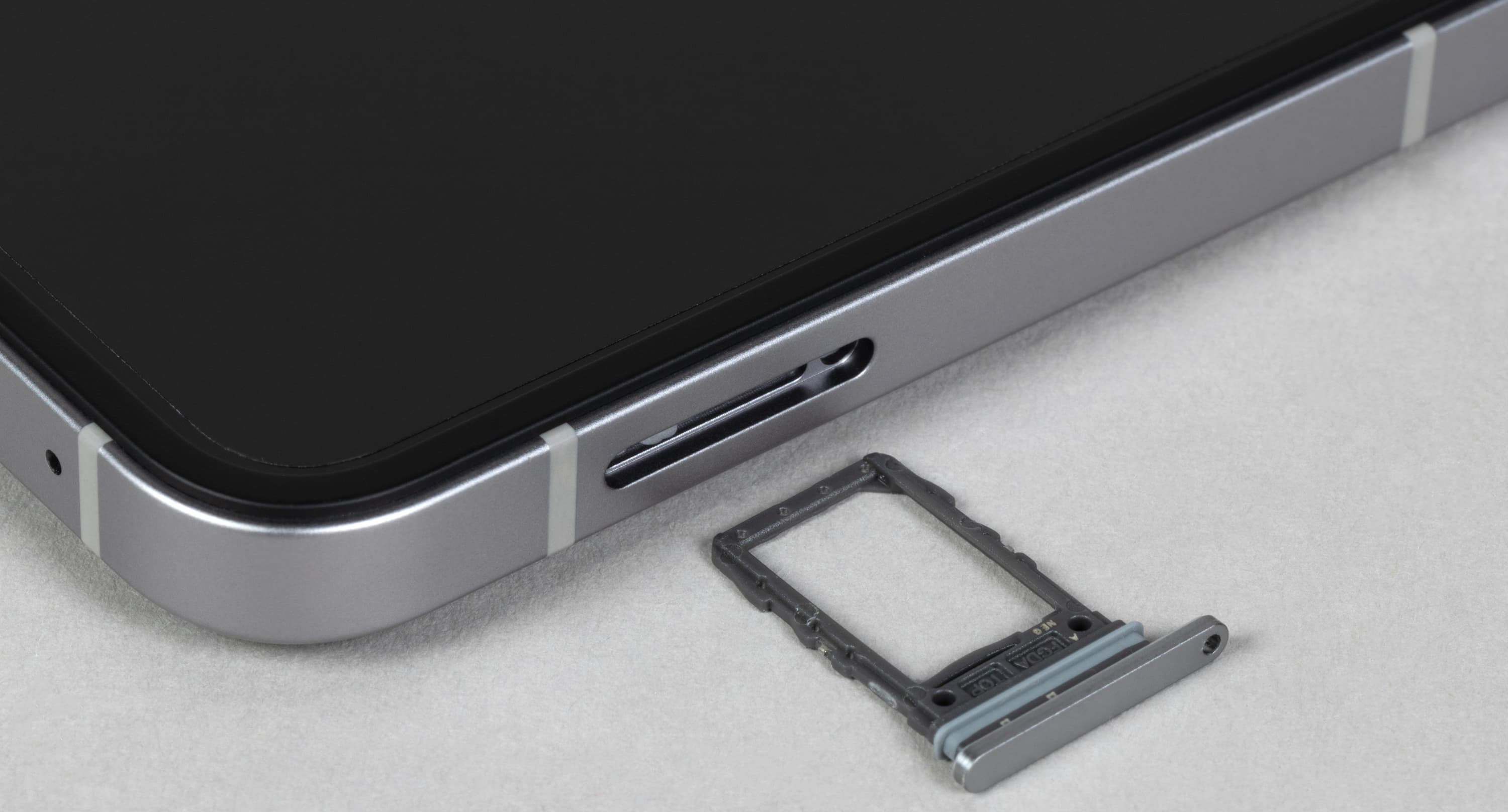 В выдвижной лоток на боку можно установить две карты Nano-SIM (с одной и с другой стороны салазок). Для карты памяти microSD места не предусмотрено.