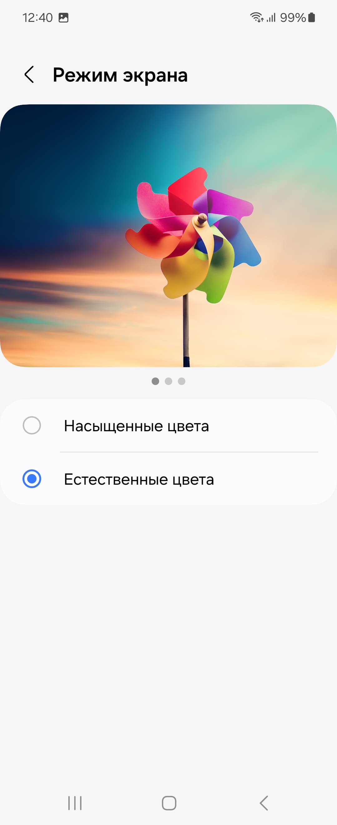 Фотография выше получена после выбора профиля Естественные цвета в настройках экрана, всего их два: