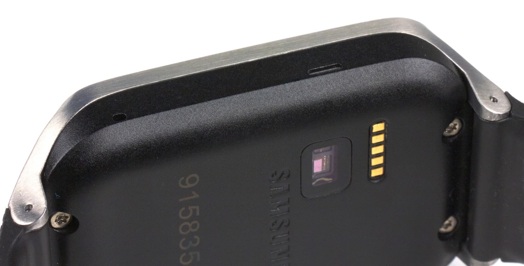 Еще одно отличие дизайна Gear 2 от Galaxy Gear связано с появлением нового датчика: это измеритель пульса, размещенный на тыльной стороне часов под контактами. Работает он так же, как и в Samsung Gear Fit.
