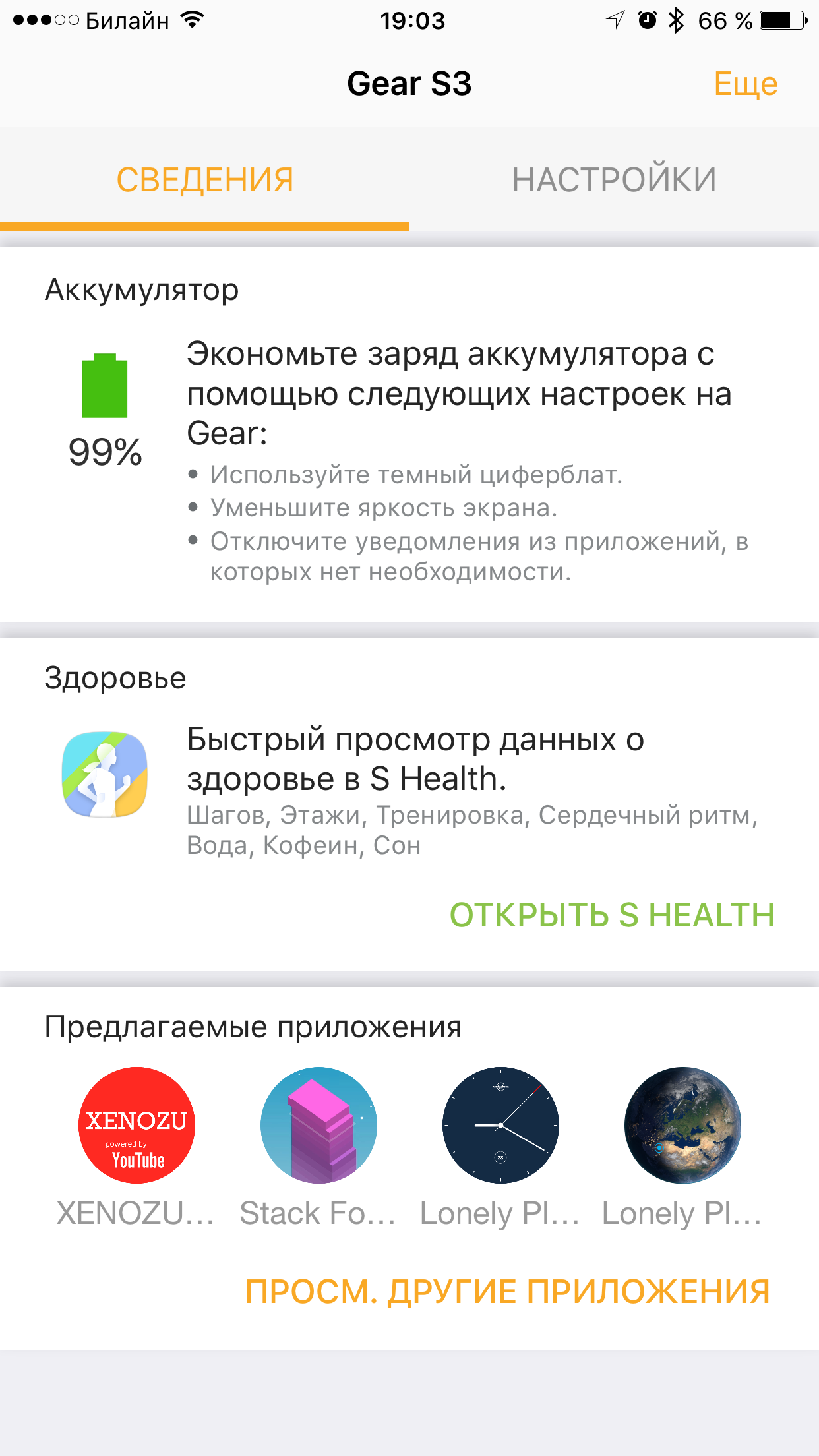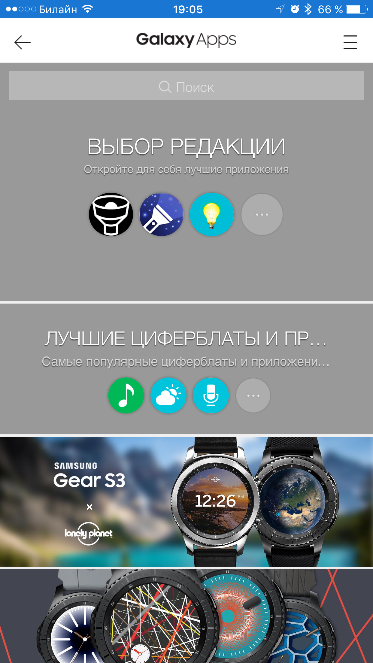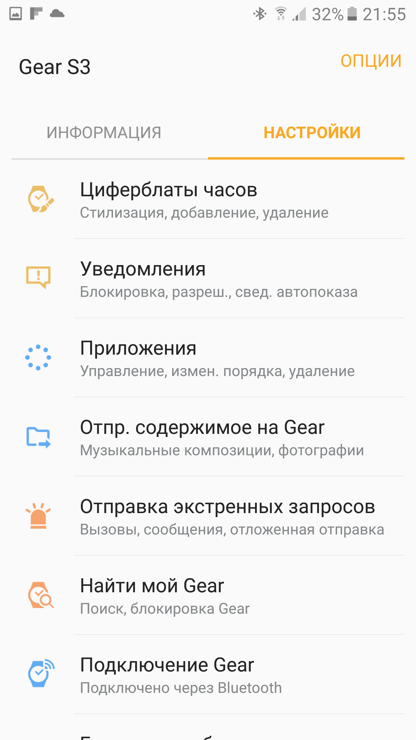 На любом из устройств линейки Galaxy у вас уже есть необходимое приложение для работы с часами, называется оно Samsung Gear. Принцип его работы не изменился со времен Gear S2, поэтому повторяться и расписывать его подробно мы не будем — если хотите, взгляните в нашем обзоре Gear S2. Гораздо интереснее проверить работу Gear S3 с другими устройствами: так, мы попробовали подключить часы к не самому новому LG G4s.
