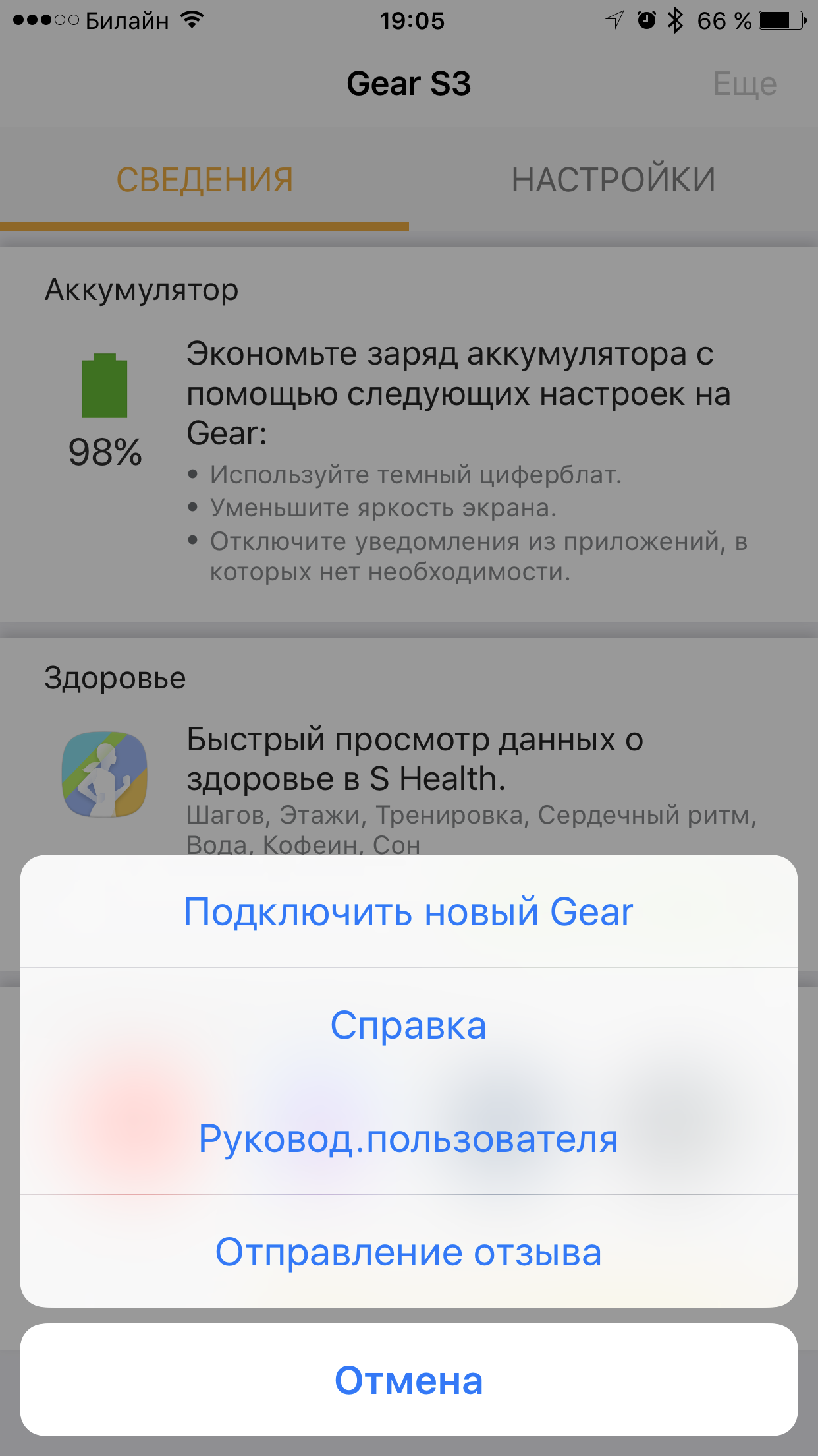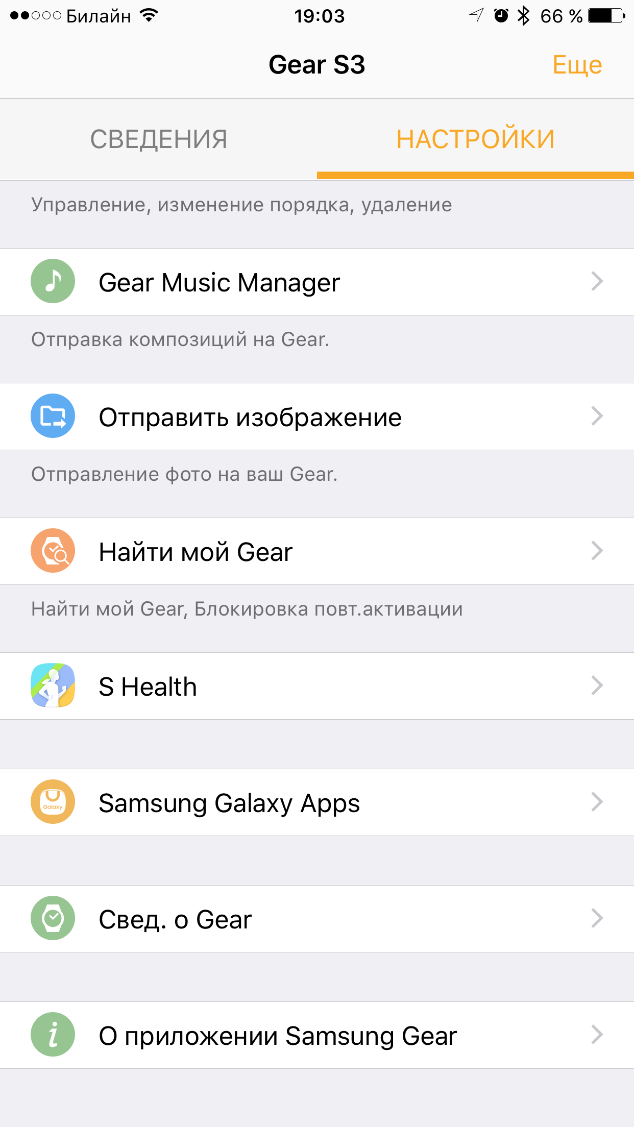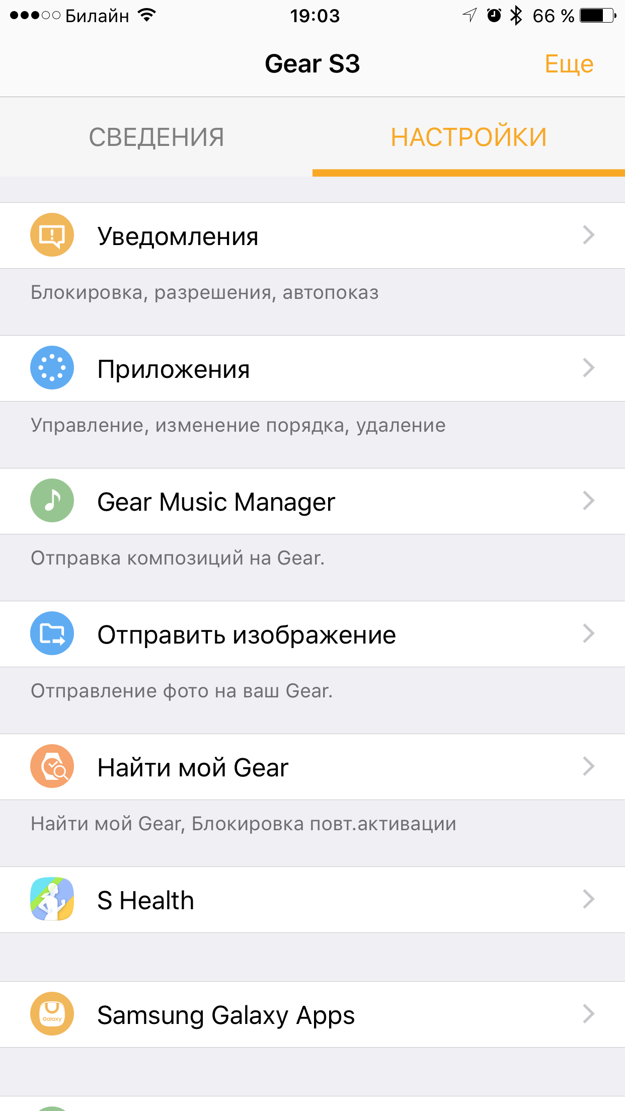 Что касается подключения к iOS-устройствам (речь идет об iPhone, поскольку с другими iOS-устройствами Gear S3, к сожалению, не работают), то здесь для работы с часами вам потребуется только приложение Samsung Gear S. После того, как вы установите его на свой iPhone, вы сможете полноценно управлять часами: устанавливать и удалять приложения, а также отслеживать другую важную информацию.