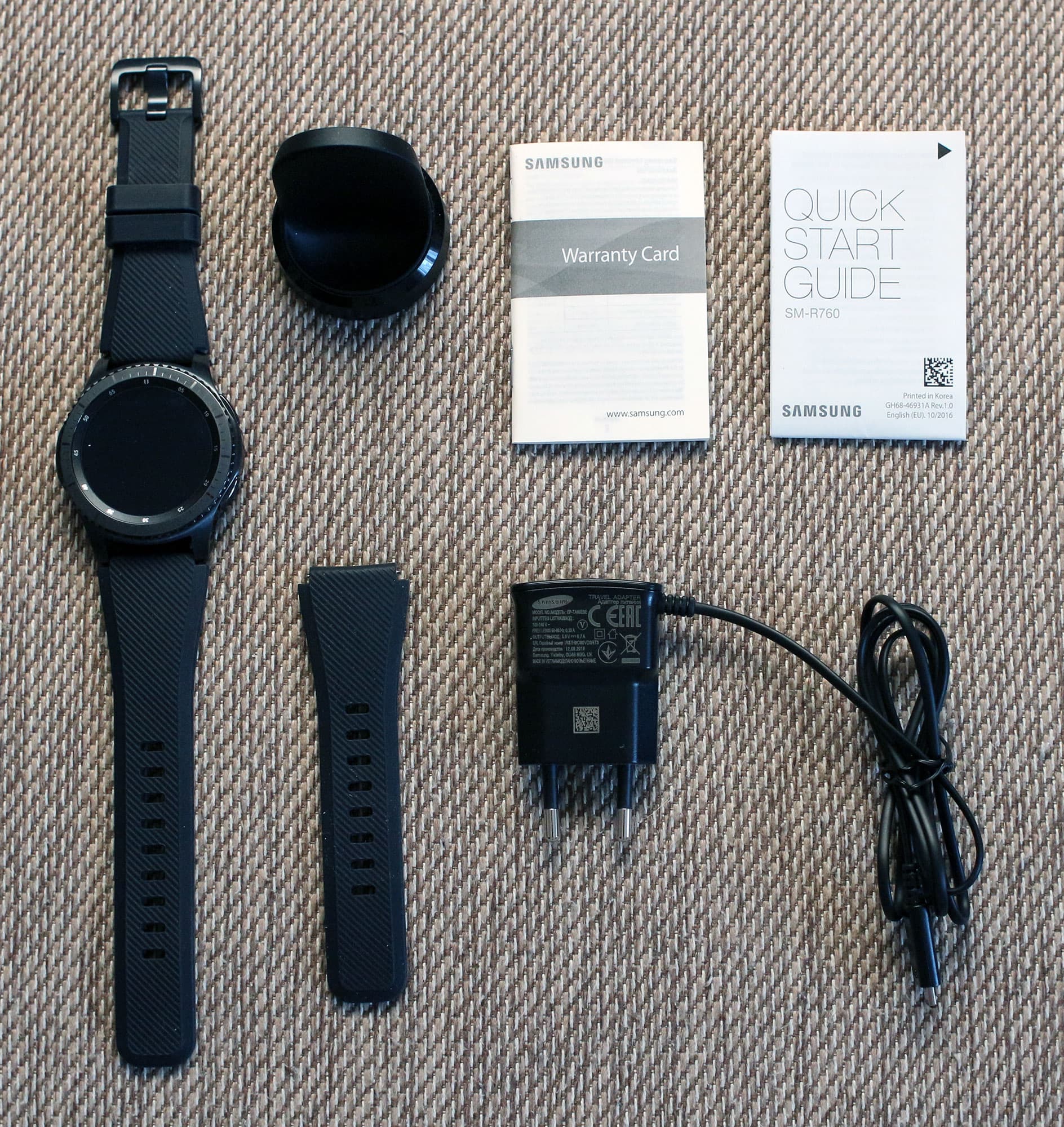 Уже традиционно Samsung кладет в коробку вместе с часами ремешок другого размера. К сожалению, при комплектации третьего поколения своих умных часов южнокорейская компания решила отказаться от наличия дополнительного ремешка основного размера (как было в Gear S2), поэтому если что-то случится с основным ремешком, вам, скорее всего, придется купить новый. Однако стоит отметить, что к Gear S3 подходит абсолютно любой ремешок различных часовых производителей, поэтому вы сможете подобрать тот, который нравится именно вам.