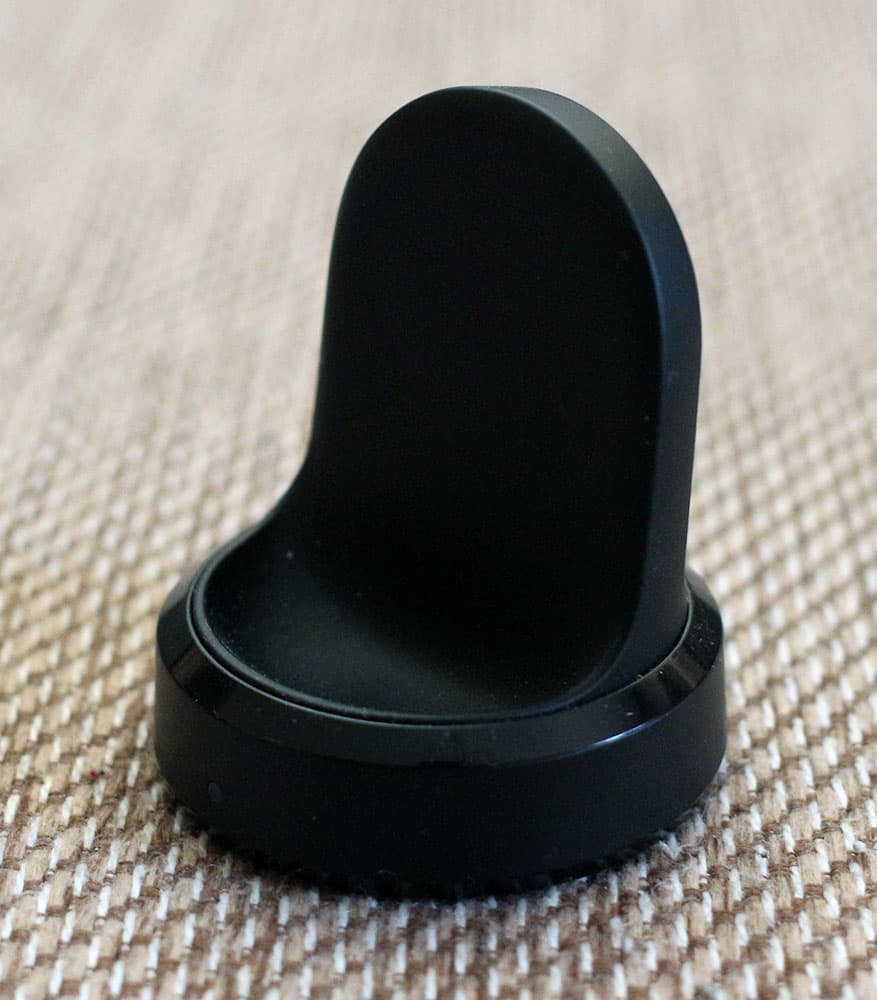 Беспроводная зарядная док-станция хороша компактными размерами и наличием магнита, благодаря которому часы удерживаются при зарядке. Фактически, устройство док-станции аналогично тому, что мы видели в Gear S2, поэтому мы не будем повторяться.