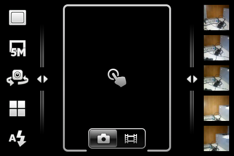Настройки и инструменты управления камерой скомпонованы на экране несколько необычно. В правой части дисплея находятся эскизы только что полученных фотографий. Потянув за эту панель, можно раскрыть окно с полной галереей снимков. С другой стороны экрана находятся значки наиболее используемых настроек: режим захвата изображения (например, распознавание улыбки), разрешение снимков, переключение между основной и дополнительной камерами, условия съёмки (пейзаж, портрет, ночная съёмка, спорт и так далее), режим работы вспышки. Аналогично, потянув за панель, можно открыть окно с остальными настройками камеры. Среди них находятся: баланс белого, таймер, режим фокусировки, коррекция экспозиции, стабилизация изображения, съёмка касанием и другие.