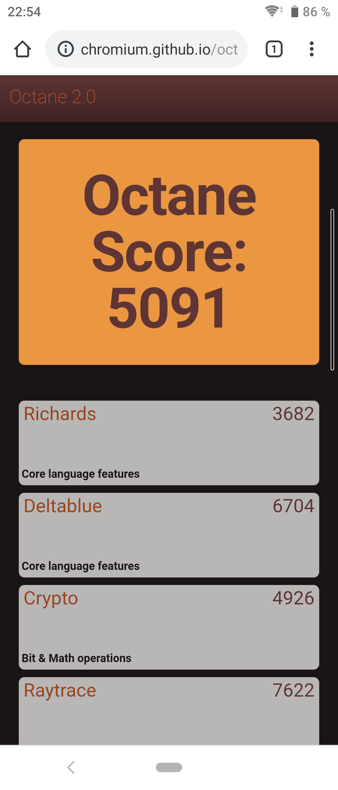 | Google Octane 2 (больше — лучше) | 5091 | 8193 | 10491 | 8132 | 9637 |