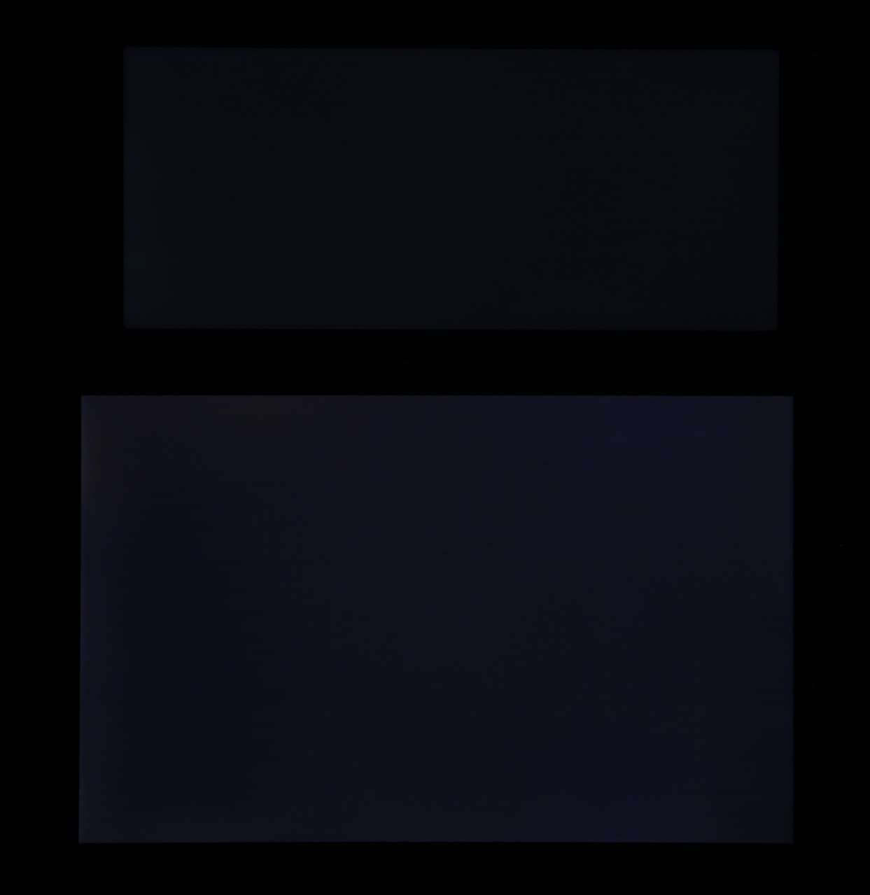 Яркость под углом у обоих экранов заметно уменьшилась (примерно в 5 раз, исходя из разницы в выдержке), но у Sony Xperia 10 экран все же немного светлее. Черное поле при отклонении по диагонали высветляется сильно и приобретает легкий красноватый оттенок. Фотографии ниже это демонстрируют (яркость белых участков в перпендикулярном плоскости экранов направлении у экранов одинаковая!):