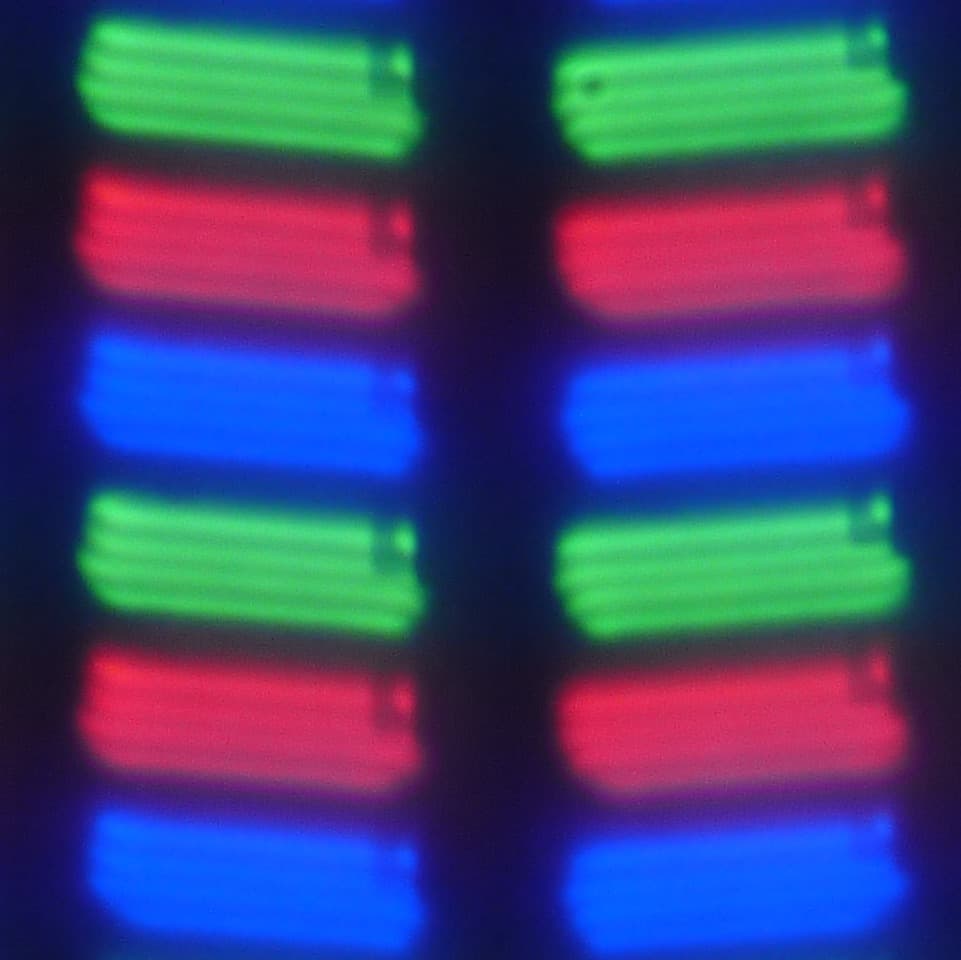 В данном экране используется матрица типа IPS. Микрофотографии демонстрируют типичную для IPS структуру субпикселей: