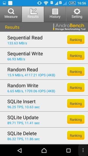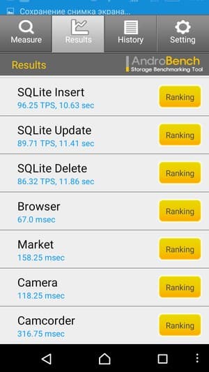 Результаты теста AndroBench на скорость работы с памятью: