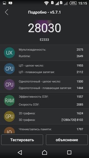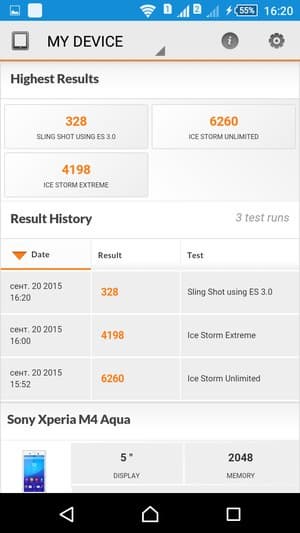 По итогам тестирования Sony Xperia M4 Aqua показал достаточно скромные результаты, даже ниже, чем можно было бы ожидать от и без того далеко не самой мощной платформы Qualcomm Snapdragon 615. По данным популярного комплексного бенчмарка AnTuTu, это всего 28К очков, или около 29К в 64-разрядной версии того же теста.