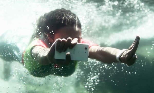 На снимке ниже представлен рекламный постер смартфона Sony Xperia Z3 Compact, имеющего тот же самый класс защиты IP65/68. Теперь этой картинки на сайте Sony больше нет, вместо нее появилось изображение девушки, стоящей со смартфоном под дождем. Справедливости ради стоит заметить, что для старых моделей, вроде Xperia Z3 Compact, разработчики не стали менять текст, подтверждающий возможность погружения в пресную воду на глубину до 1,5 метров на время до 30 минут в соответствии со стандартом IP68.