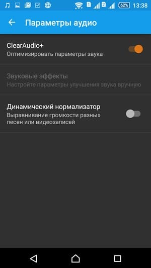 В звуковом плане смартфон Xperia M4 Aqua ничем не примечателен. Единственный основной динамик издает звонкий и плоский звук без заметного присутствия низких частот. Нельзя сказать, что звучание на максимальном уровне слишком уж тихое, но в то же время запаса громкости не вполне достаточно. В наушниках ситуация немного лучше, но все равно звучание глуховатое, не слишком яркое, звук блеклый, хотя без задействования системы улучшения ClearAudio+ он был бы еще хуже. С подключением этой комплексной системы звук смартфона становится немного более громким и насыщенным. Для ручного управления здесь доступны лишь стандартные возможности эквалайзера с предустановленными значениями, а о таких используемых во флагманах Sony функциях, как Clear Phase, Clear Bass и Clear Stereo, а также о технологии увеличения громкости xLoud не сказано ни слова.