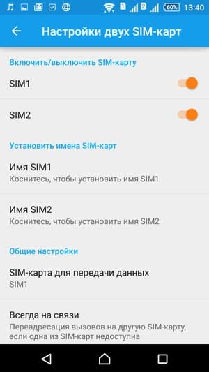 Смартфон поддерживает работу с двумя SIM-картами, но настройки режимов откровенно спартанские: жестко можно привязать к конкретной карте лишь функцию передачи данных, а для голосовых вызовов и текстовых сообщений необходимо каждый раз выбирать SIM-карту в соответствующем интерфейсе во время набора. В целом это совершенно не вызывает раздражения, но кому-то может не хватать такой очевидной функциональности, как изначальная привязка тех или иных функций к конкретным картам.