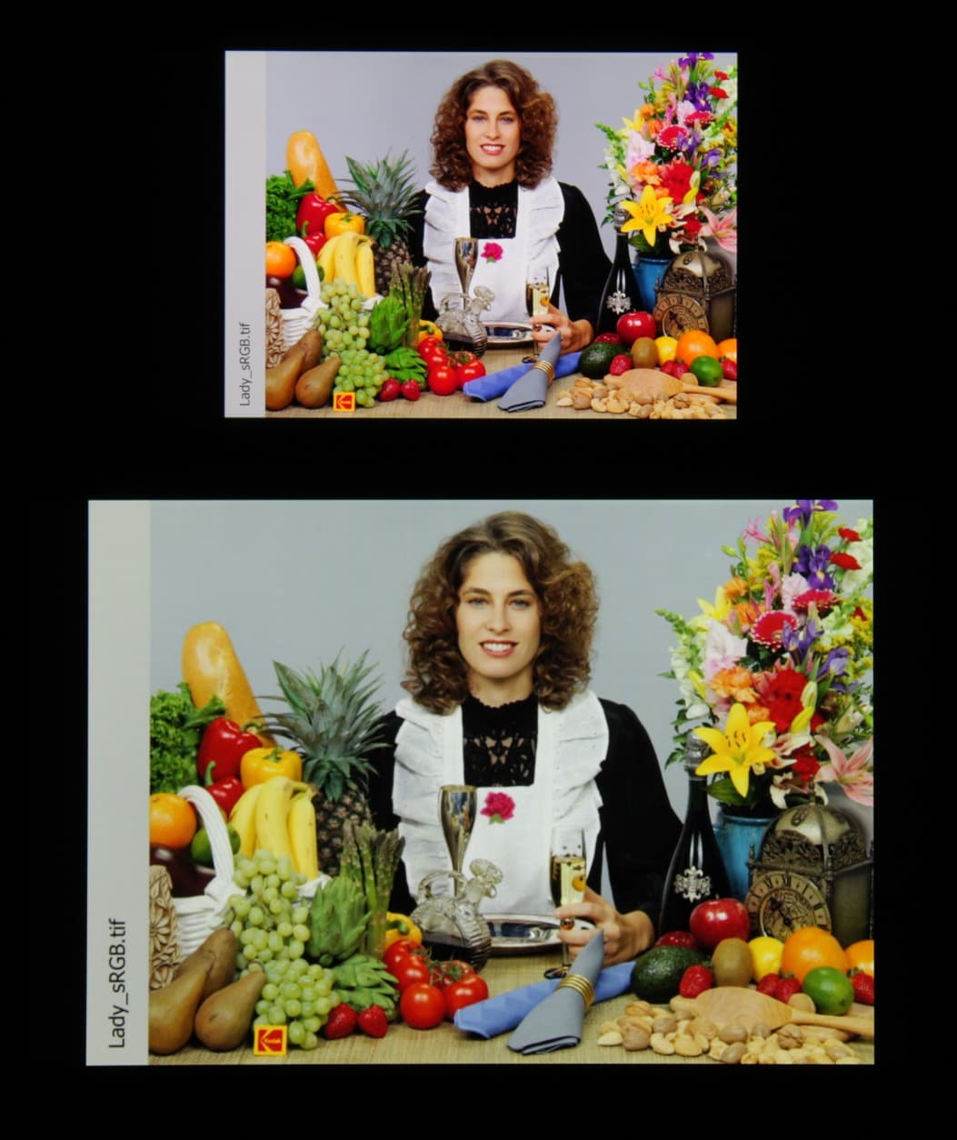 Отметим хорошую равномерность яркости и цветового тона белого поля. И тестовая картинка: