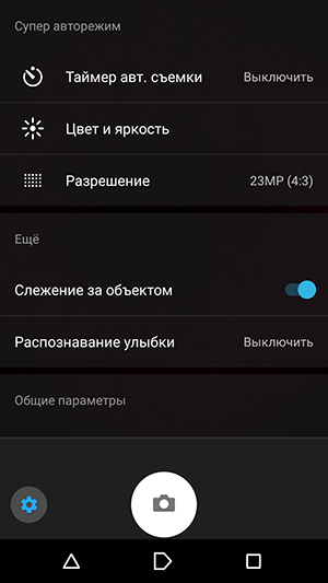 В ручном режиме управления съемкой можно выставлять ISO, баланс белого, менять тип фокусировки. Имеется пятикратный цифровой зум, осуществляемый с помощью технологии масштабирования Clear Image. Часть настроек съемки может быть передана для управления сторонним приложениям через Camera2 API, запись в RAW не поддерживается.