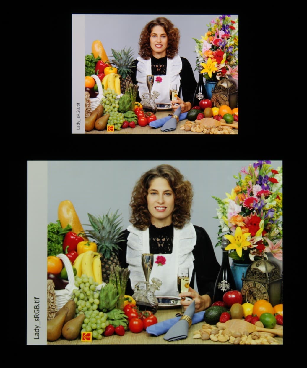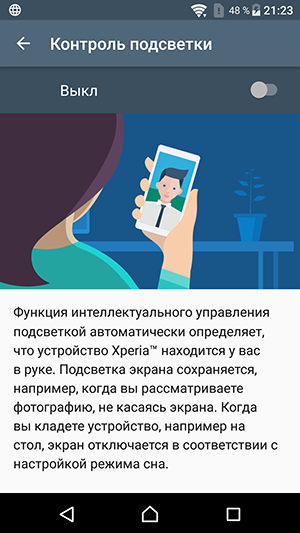 Они очень нетипичные для топовых мобильных устройств Sony. По всей видимости, в этом экране используются светодиоды с синим излучателем и зеленым и красным люминофором (обычно — синий излучатель и желтый люминофор), что в сочетании со специальными светофильтрами матрицы и позволяет получить широкий цветовой охват. Да, и в красном люминофоре, видимо, используются так называемые квантовые точки. К сожалению, в итоге цвета изображений — рисунков, фотографий и фильмов, — ориентированных на пространство sRGB (а таких подавляющее большинство), имеют неестественную насыщенность. Особенно это заметно на узнаваемых оттенках, например на оттенках кожи. Результат приведен на фотографии выше.