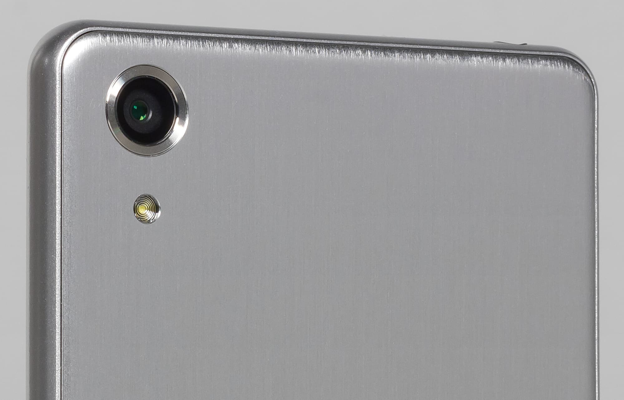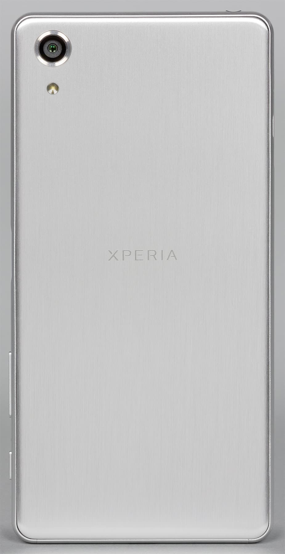Задняя стенка тоже выполнена из металла, но эти две детали не составляют единое целое, корпус сборный, и поверхности у отдельных частей тут разные. В отличие от боковой рамки, задняя крышка имеет текстурированную поверхность, напоминающую последствия недошлифовки металла. Производитель называет это покрытие brushed aluminium, и имеется оно только у смартфонов X Performance, но не у обычных Х. Правда, оказалось, что и у модели Xperia X Performance эта самая «зашкуренная» поверхность имеется не во всех цветовых вариантах: выразительные текстуры наблюдаются только у черного и серого корпуса, в то время как у розового и лимонного корпуса задняя стенка точно такая же, как у обычного Xperia X.