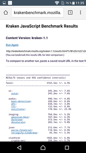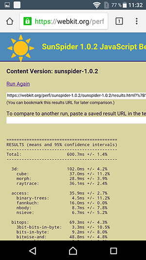 Что касается бенчмарков для оценки скорости движка javascript, то стоит всегда делать скидку на то, что в них результаты существенно зависят от браузера, в котором запускаются, так что сравнение может быть истинно корректным только на одинаковых ОС и браузерах, а такая возможность имеется при тестировании не всегда. В случае с ОС Android мы всегда стараемся использовать Google Chrome.