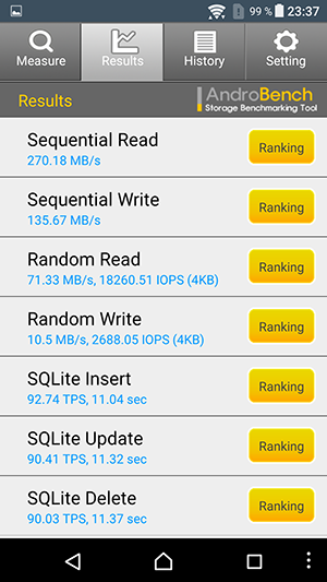 Результаты теста AndroBench на скорость работы с памятью: