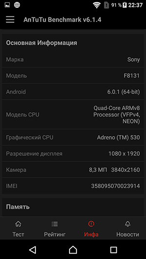 - Операционная система Android 6.0.1