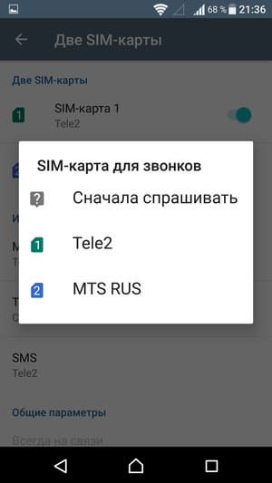 Смартфон обеспечивает работу с двумя SIM-картами по стандарту Dual SIM Dual Standby. Радиомодуль здесь один, поэтому активный разговор может быть только один. С сетями 3G/4G может работать SIM-карта в любом слоте, однако одновременно в этом режиме может работать лишь одна из карт (вторая будет работать только в 2G). Выбор между двумя SIM-картами для осуществления вызова, отправки SMS и пр. можно осуществить заранее или непосредственно перед вызовом.