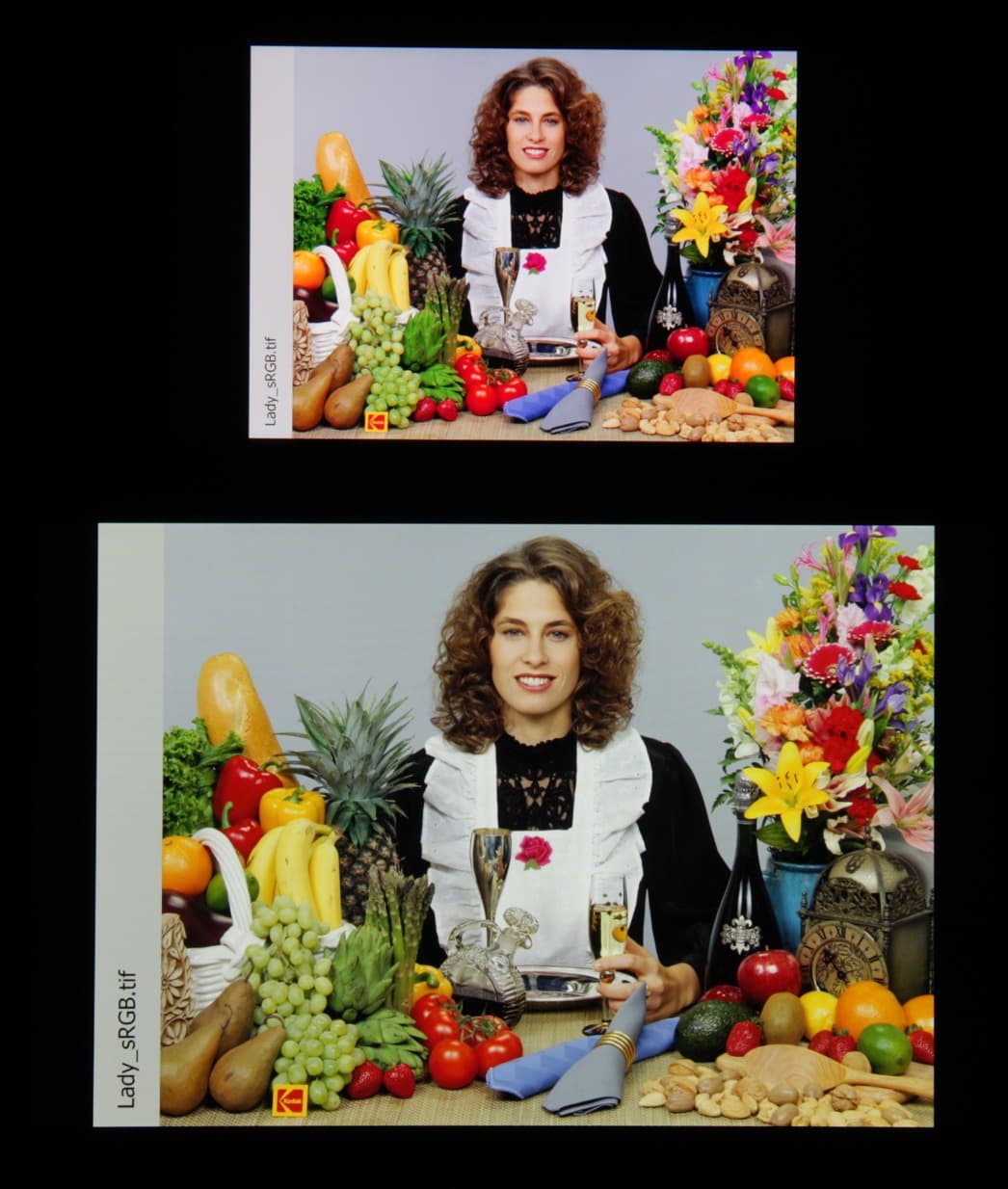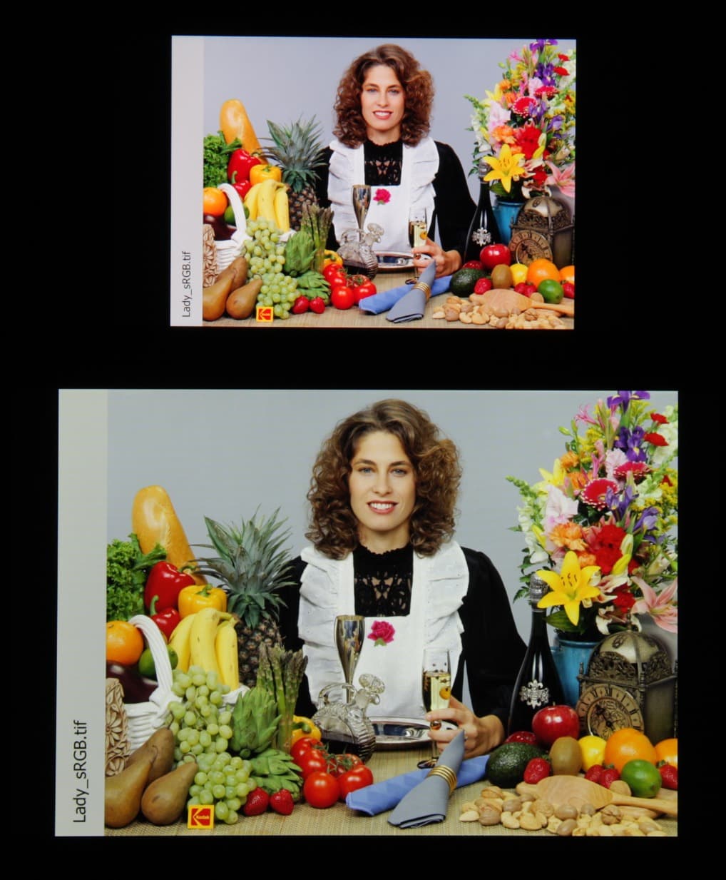 Отметим хорошую равномерность яркости и цветового тона белого поля. И тестовая картинка: