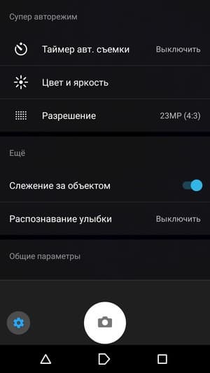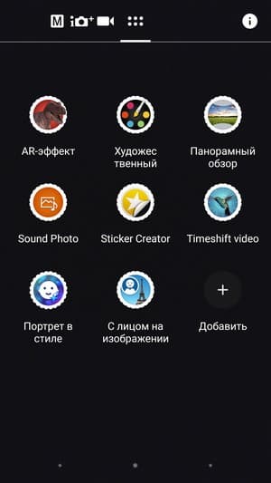 Среди настроек традиционно можно найти несколько дополнительных режимов, например панорамный. Среди них также имеются развлекательные, такие как знакомый режим дополненной реальности под названием AR effect, который дает возможность совмещать реальные снимки с анимацией. В последнее время выбор вариантов для AR был значительно расширен. Часть настроек съемки может быть передана для управления сторонним приложениям через Camera2 API, запись в RAW не поддерживается.