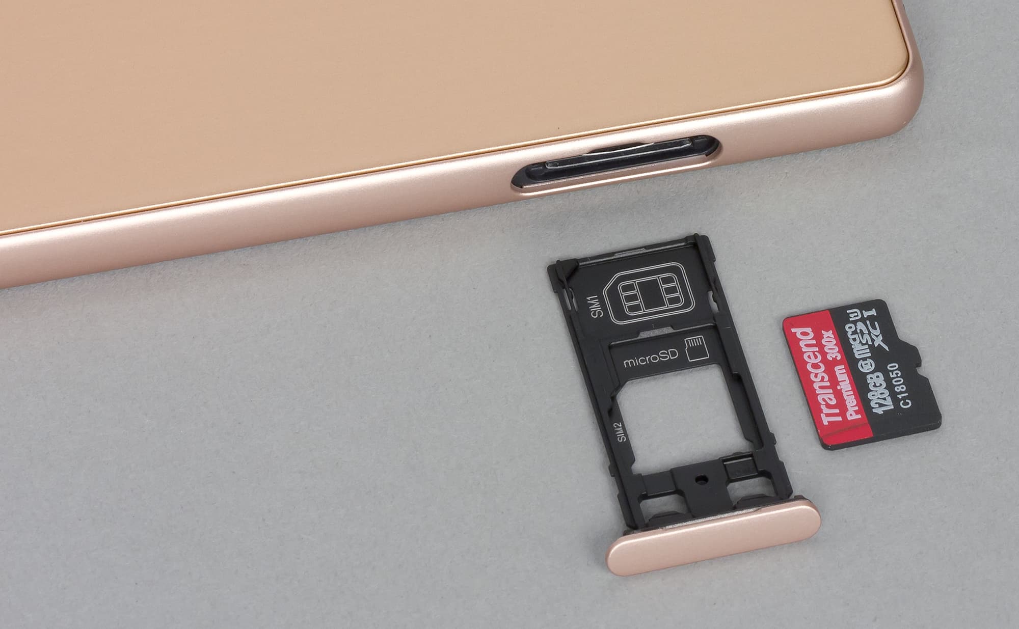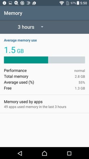 Объем оперативной памяти смартфона составляет 3 ГБ, объем встроенной флэш-памяти — 32 или 64 ГБ. Пользователю из 64 ГБ изначально доступно 48,6 ГБ свободного пространства. Этот объем можно увеличить за счет карт microSD, но тогда придется изъять одну из SIM-карт. Также есть возможность подключать к порту USB внешние флэш-накопители в режиме OTG. Карты microSD поддерживаются емкостью до 200 ГБ, на практике наша проверочная карта Transcend Premium microSDXC UHS-1 объемом 128 ГБ уверенно распозналась устройством.