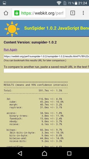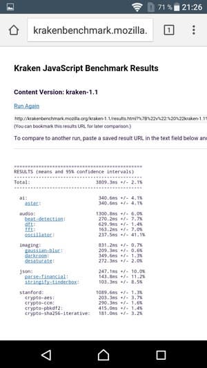 Что касается бенчмарков для оценки скорости движка javascript, то стоит всегда делать скидку на то, что в них результаты существенно зависят от браузера, в котором запускаются, так что сравнение может быть истинно корректным только на одинаковых ОС и браузерах, а такая возможность имеется при тестировании не всегда. В случае с ОС Android мы всегда стараемся использовать Google Chrome.