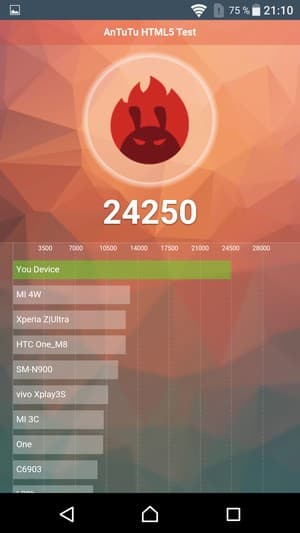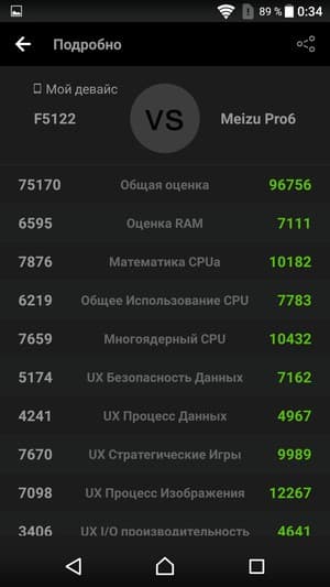 Если судить по данным популярного комплексного теста AnTuTu, платформа Qualcomm Snapdragon 650 находится по современным меркам в среднем сегменте, никак не в верхнем. Там властвуют флагманы с результирующими цифрами от 90K до 130К очков и выше, в то время как герой обзора набирает в AnTuTu 6 только 75К. В графических тестах разрыв тоже есть, но он далеко не так заметен. В сравнении с родственной Snapdragon 652 (на примере LG G5 se) особой разницы мы не обнаружили, однако это можно списать на вдвое более высокое разрешение дисплея у корейского смартфона, что могло отчасти нивелировать превосходство старшей платформы в некоторых тестах.