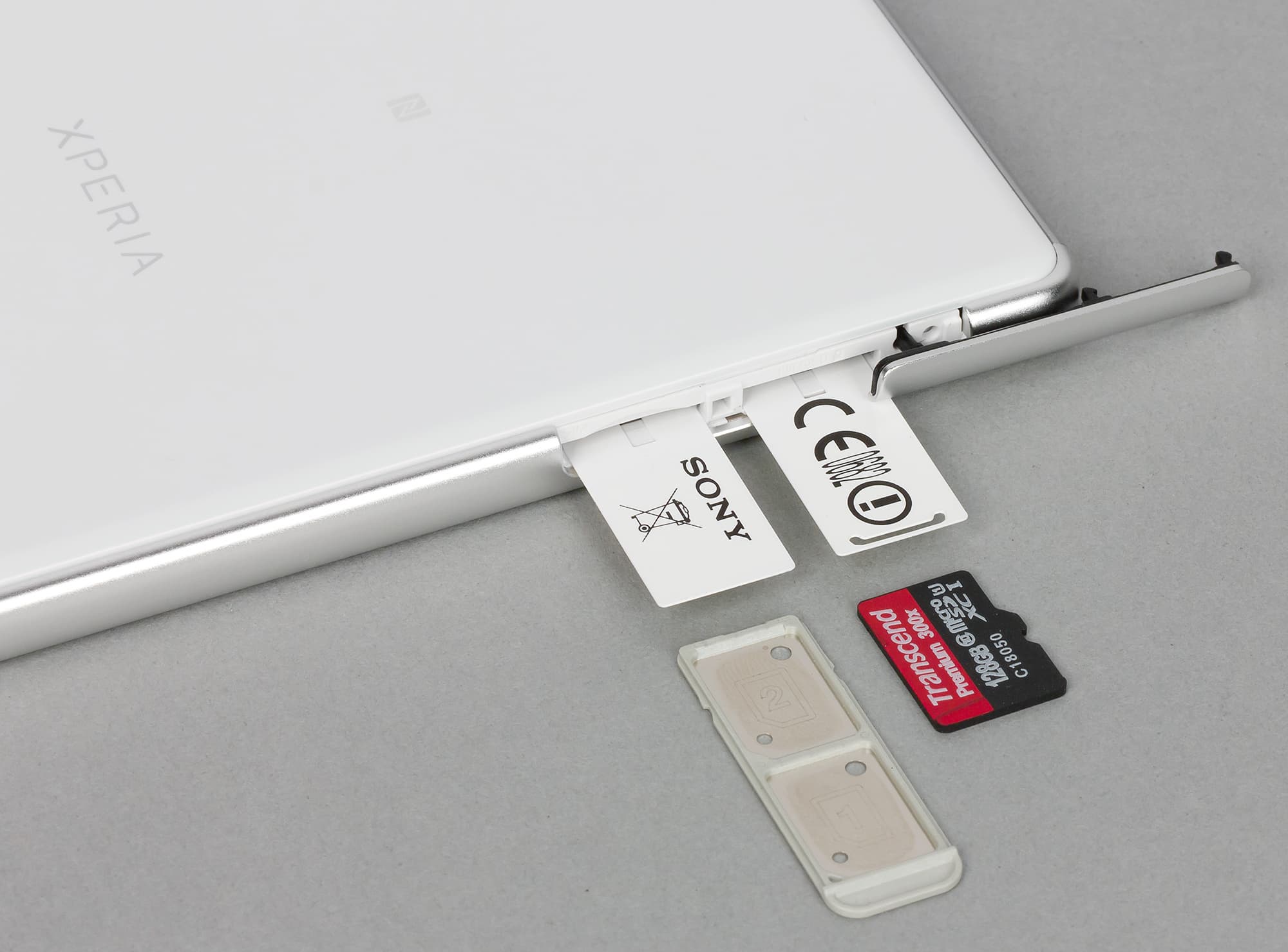 В плане распределения элементов на корпусе у Xperia XA Ultra все привычно. Карточки вставляются в боковой разъем, прикрытый крышкой. Под крышкой скрывается два слота для карт формата Nano-SIM, а также отдельный разъем для карты памяти microSD. То есть здесь все три карточки можно использовать одновременно, что не может не радовать. Горячей замены как таковой нет, поскольку при любом открытии крышки аппарат автоматически перезагружается сам собой.