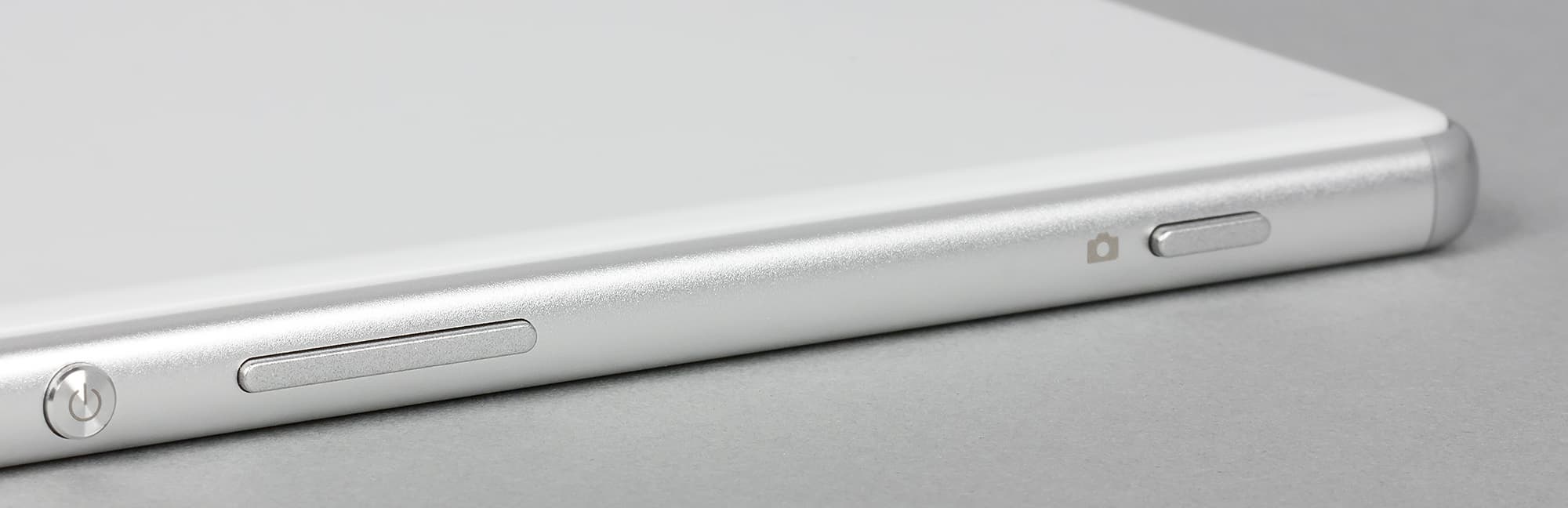 На противоположной боковой грани собрались все три механические кнопки для управления питанием, громкостью и камерой. Клавиши крупные, заметно выпирают за пределы поверхности, легко нащупываются вслепую, ход их мягок, но упруг. В целом претензий к данным элементам нет, хотя, конечно, привычнее видеть клавишу громкости выше клавиши питания, а тут все наоборот. Для левши такое расположение неудобно, поскольку качелька громкости всегда попадает под пальцы.