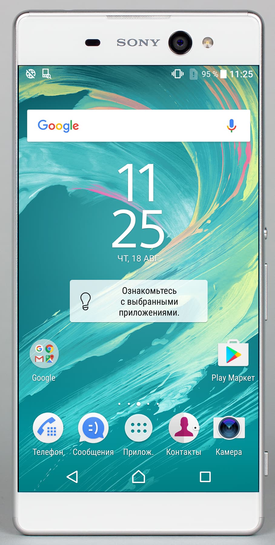 Смартфон оснащен очень крупным сенсорным экраном IPS с выпуклым 2.5D-стеклом с покатыми краями. Физические размеры дисплея составляют 75×133 мм, диагональ — 6 дюймов. Разрешение равняется 1920×1080, так что плотность точек достигает 367 ppi. Рамка толщиной в 2 мм по бокам вокруг экрана при таких огромных габаритах смартфона, можно сказать, визуально отсутствует вовсе. Порой это вызывает некоторые неудобства, связанные с неожиданными касаниями краев дисплея при захвате пальцами. Случается это не так часто, но у более мелкой по размерам Xperia ХА такого не было вовсе. То есть тут многое зависит от габаритов устройства и от того, как сильно пальцы загибаются, обхватывая боковины. В данном случае все совпало так, что экран чаще попадает под пальцы, чем у Xperia ХА с менее крупным корпусом.