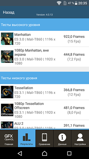 Интересно сравнить производительность Xperia XA и со старшей моделью Xperia X. Та тоже строится не на топовой платформе Qualcomm, а на SoC среднего уровня. Однако у нее результаты во всех тестах заметно выше, причем и в общих, и в специализированных, в том числе графических, что позволяет оценить Helio P10 и Qualcomm Snapdragon 650/652 как решения разного уровня. И если мы называем платформы MediaTek MT6755 и HiSilicon Kirin 650 среднеуровневыми, тогда для более высоких по всем параметрам, но все же не флагманских Qualcomm Snapdragon 650/652 придется добавить некий субфлагманский уровень, который выше среднего, но ниже топового. В любом случае Xperia X по всем тестам оказывается производительнее, чем Xperia XА, что вполне логично для старшей и более дорогой модели в линейке.