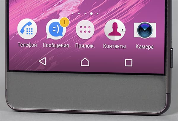 В нижней части под экраном у Sony давно уже нет сенсорных кнопок, только виртуальные на экране. И в этой связи можно отметить, что под экраном оставлено довольно много совершенно свободного, ничем не занятого пространства.