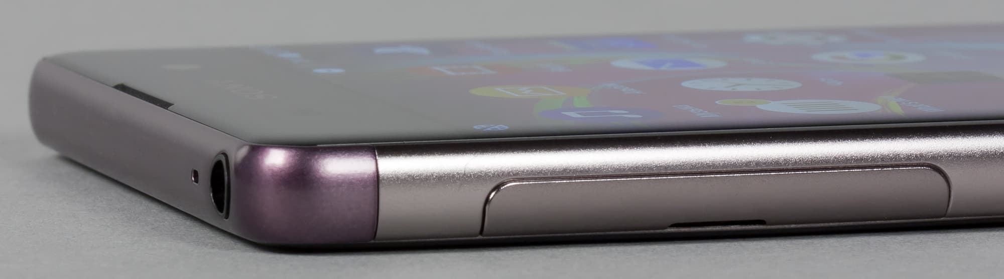 Механические кнопки разместились на противоположной, правой боковой грани корпуса. В отличие от старших моделей, здесь нет вписанного в кнопку питания сканера отпечатков пальцев. Да и сама кнопка по форме другая: она не вытянутая, а круглая, как в прошлых моделях Xperia Z еще до появления в них дактилоскопических датчиков.
