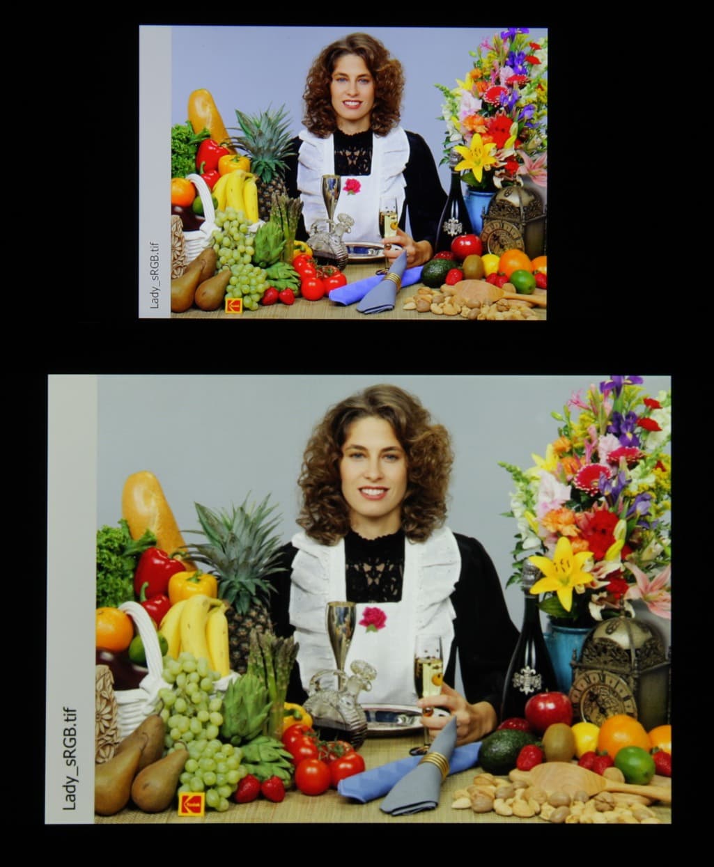 Отметим хорошую равномерность яркости и цветового тона белого поля. И тестовая картинка: