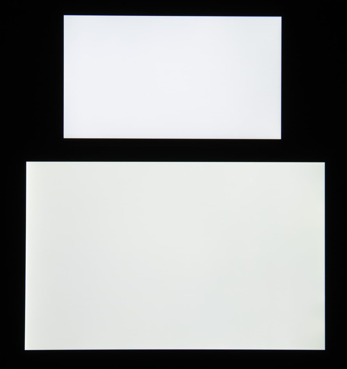Яркость под углом у обоих экранов заметно уменьшилась, но в случае Sony Xperia XA падение яркости чуть больше. Черное поле при отклонении по диагонали высветляется сильно и приобретает фиолетовый или красноватый оттенок. Фотографии ниже это демонстрируют (яркость белых участков в перпендикулярном плоскости экранов направлении у экранов одинаковая!):